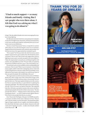 ONLINE Trending 14 STYLE Show out for your night out 16 FASHION Locally designed wedding dresses that are tailor-made treasures 18 HEALTH Looking out for your vision and more 20 SOCIAL HOUR People and events in the 405 22 PERSON OF INTEREST Cancer survivor Tarah Warren sends support through care packs Home 28 DESIGN The Nowells of Ashton Gray make their professional work personal