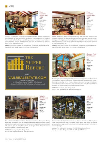 VailRealEstate.com or stop by one of our 16 offices for a copy of the 2013 Slifer Report, a detailed insight into the Vail Valley real estate market.
