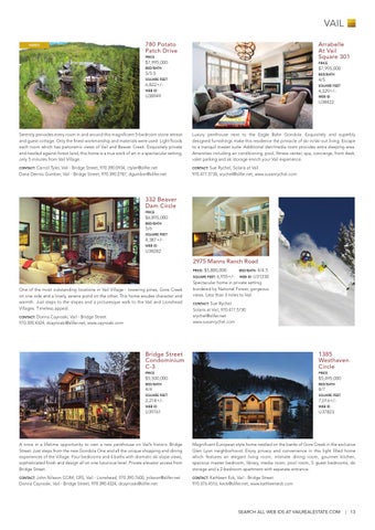 Contact: John Nilsson CCIM, CRS, Vail - Lionshead, 970.390.7600, jnilsson@slifer.net Donna Caynoski, Vail - Bridge Street, 970.390.4324, dcaynoski@slifer.net
