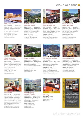 Contact: Tom Vucich Riverfront Village at the Westin 970.748.5422, tvucich@slifer.net www.vailrealestate.com