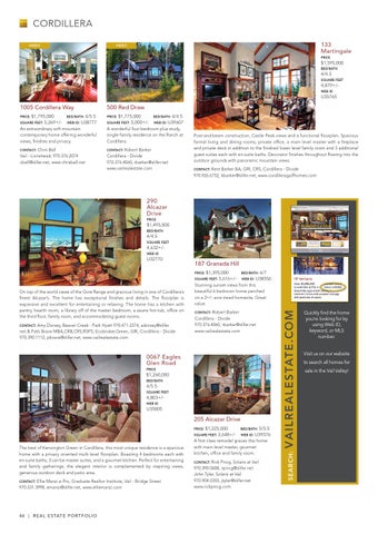 Contact: Robert Barker Cordillera - Divide 970.376.4060, rbarker@slifer.net www.vailrealestate.com