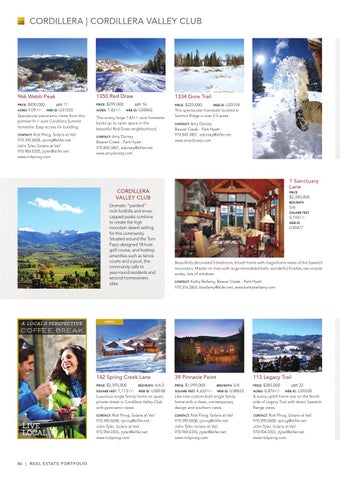 Spectacular panoramic views from this premier 9+/- acre Cordillera Summit homesite. Easy access for building. Contact: Rick Pirog, Solaris at Vail 970.390.0608, rpirog@slifer.net John Tyler, Solaris at Vail 970.904.0355, jtyler@slifer.net www.rickpirog.com