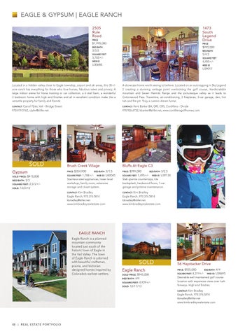 Contact: Kim Bradley Eagle Ranch, 970.376.5814 kbradley@slifer.net www.kimbradleyrealestate.com