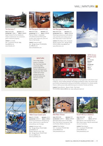 Contact: George Lamb Vail - Bridge Street, 970.479.2002 glamb@slifer.net Heather McInerny GRI, CNE, Vail - Bridge Street, 970.479.5760 hmcinerny@slifer.net www.myvailvalley.com