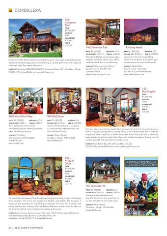 Contact: Robert Barker Cordillera - Divide, 970.376.4060 rbarker@slifer.net