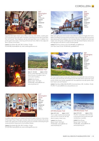 Incredible single-family home located at the end of a quiet cul-de-sac in the enclave of Kensington Green. Wide open mountain vistas and a sunny floorplan with private master suite, guest suite on the main level, bunk room and deck overlooking the golf course and pond. Great price for the Cordillera lifestyle. Contact: Kent Barker BA, GRI, CRS, Cordillera - Divide 970.390.9982, kbarker@slifer.net, www.cordilleragolfhomes.com