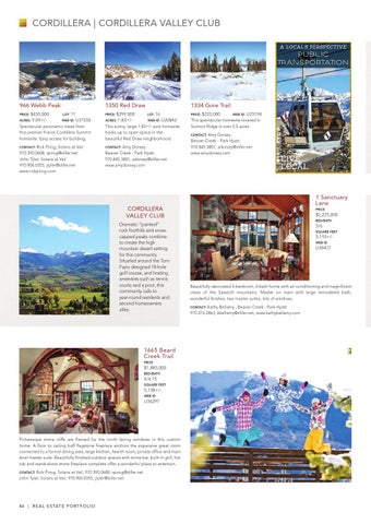 CORDILLERA VALLEY CLUB Dramatic “painted” rock foothills and snowcapped peaks combine to create the high mountain desert setting for this community. Situated around the Tom Fazio designed 18-hole golf course, and hosting amenities such as tennis courts and a pool, this community calls to year-round residents and second homeowners alike.