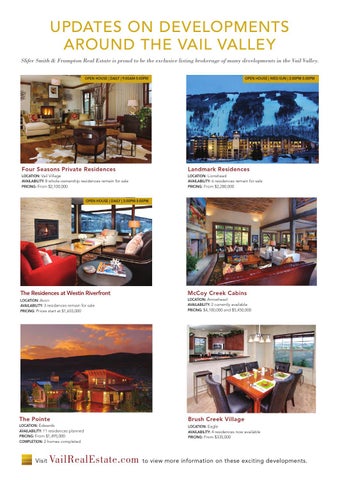 updates on developments around the vail valley Slifer Smith & Frampton Real Estate is proud to be the exclusive listing brokerage of many developments in the Vail Valley. open house | daily | 9:00am-5:00pm