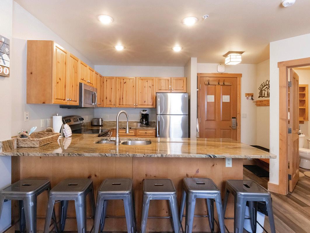 a cozy living space, great amenities, and a private patio with ski views. Perfect as a getaway or rental investment.