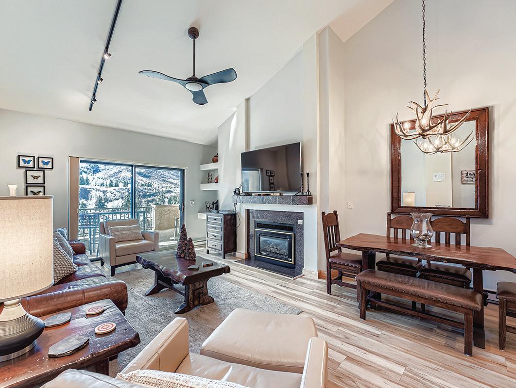 Walk to the Lionshead ski slopes from this beautiful Enzian penthouse. The completely remodeled topfloor end unit has vaulted ceilings streaming in the sun, framing the views of Vail’s back bowls and the Lionshead slopes.