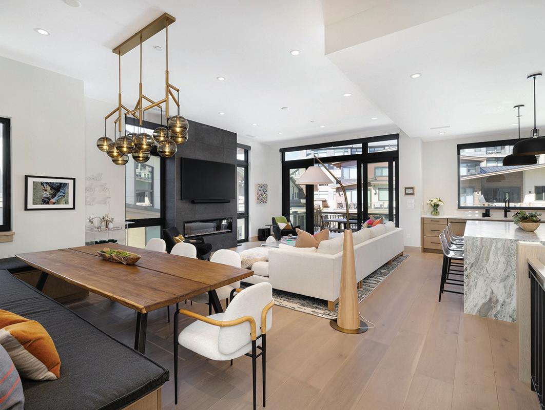 Modern style meets everyday ease in this updated twobed, one-and-a-half-bath Riverwalk condo. Enjoy sleek bathrooms, motorized shades, two garage spots, ski & bike storage, and walkable access to shops, dining, a grocery store, and a movie theater. Everything you need, steps away from home.