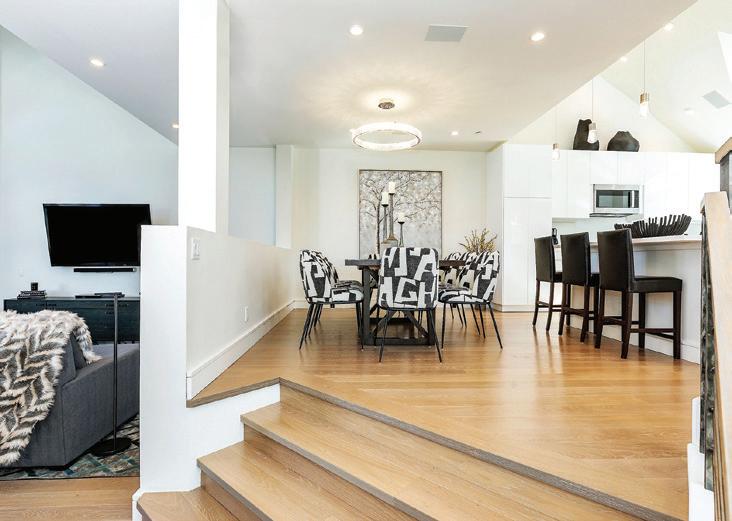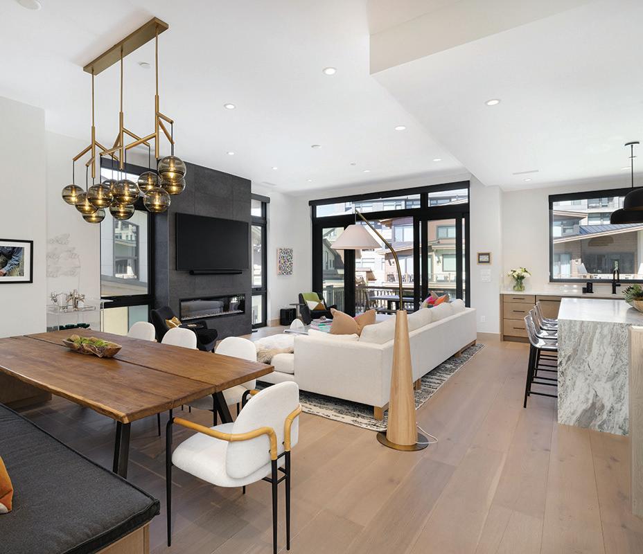In the heart of Avon, One Riverfront Townhome #13 offers a rare opportunity to own a luxury retreat in one of the Vail Valley’s most coveted locations. This fourbedroom, three-bathroom townhome spans two levels and showcases sleek modern design paired with warm mountain finishes.