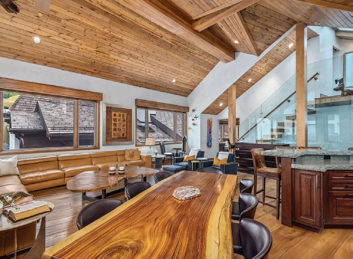to the Lionshead ski slopes from this beautiful Enzian penthouse. The completely remodeled topfloor end unit has vaulted ceilings streaming in the sun, framing the views of Vail’s back bowls and the Lionshead slopes.