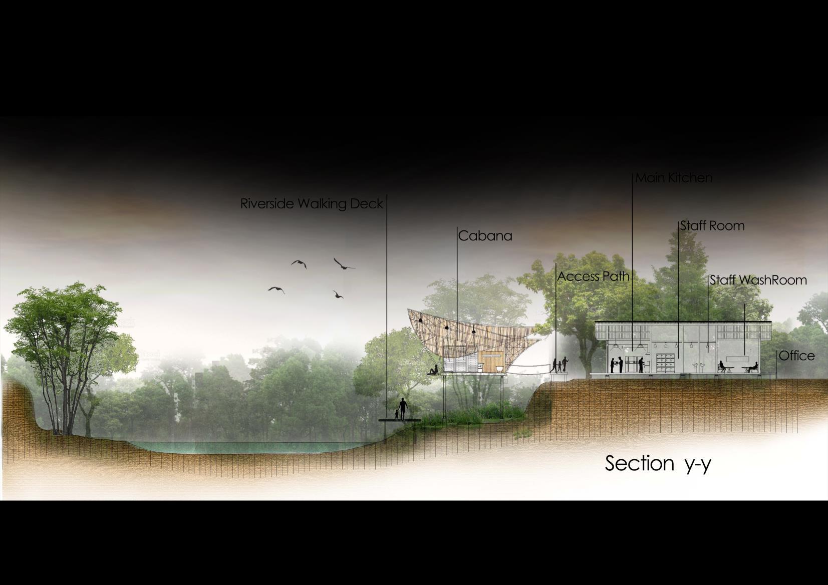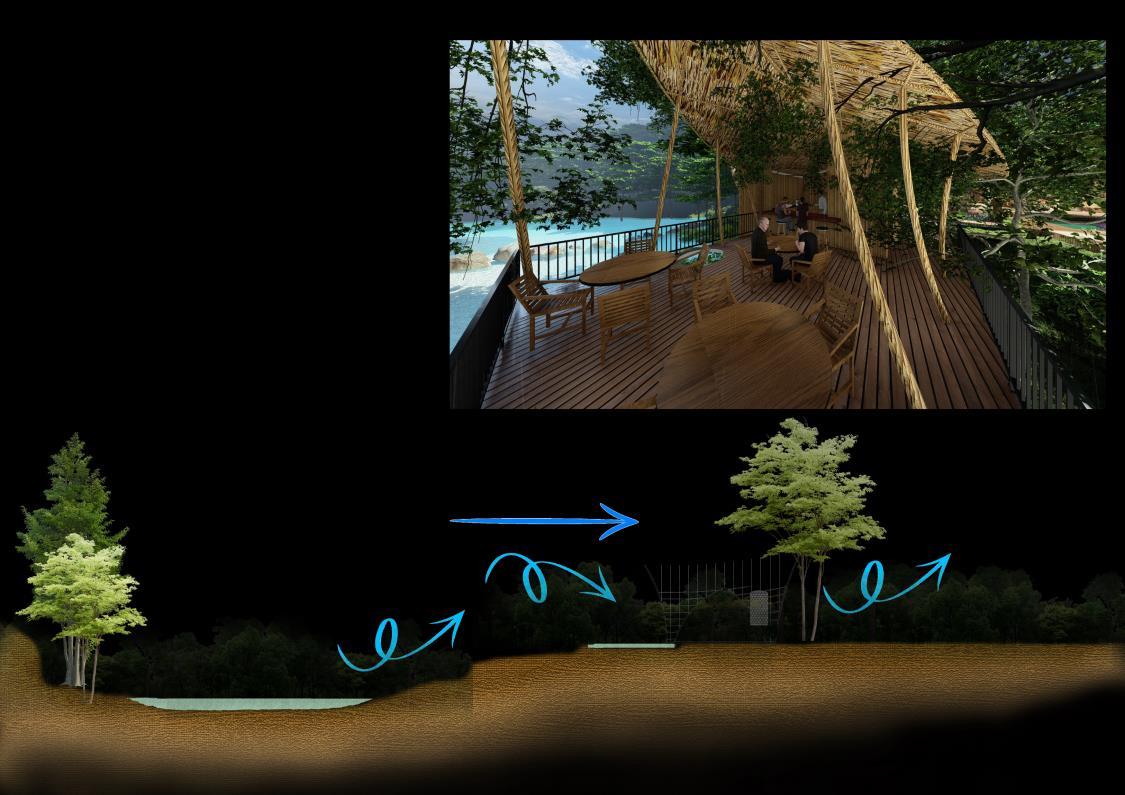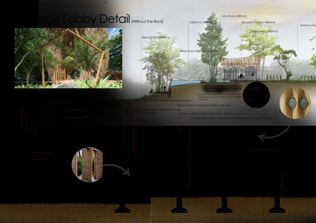 going to be Enclosed and Encroached upon by nature Meaning that the allowed to encroach on the design. From the interaction that is given to the to give a pause to the endless run of humans. In simple terms getting mind to a state of peace with nature.
