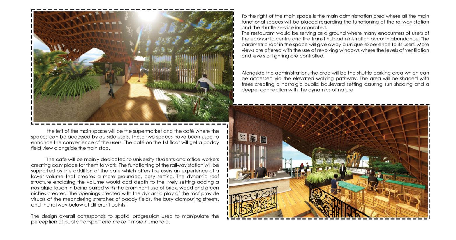 The influence of the research, which is A study on the domestic vehicular dependency on the suburb of Colombo in the green expert city of Homagama towards the innovative transit hub, paved the way for the critical argument. The final conclusion of the research was that the use of personal vehicles is more biased based on each individual's personal perception of the current public transportation system According to the analysis, the problems that were identified were the most practical and daily errors that they face when using public transportation. Problems included a lack of dependability, accessibility, facilities, time consumption, inconvenience, sexual abuse of children and women, and poor class maintenance. These system errors are extremely common, and almost all of us have encountered them Every situation in a user's life has influenced their use of personal transportation, and these errors have caused them to set their perception on the location where they despise public transportation. However, the argument is that the introduction of a dependable, sophisticated, classy, and user-friendly facility for the benefit of users can be a watershed moment in their perception of public transportation. As a result, the country's economic development and the well-being of its users will benefit This design will provide an architectural solution as a result of the identified inability to meet the needs. The design will provide the efficiency, convenience, and class maintenance that the general public desires in a public transport action system, as well as serve as a connecting point to all upcoming future events in the area. The design will also be fully sustainable, utilizing modern technology to minimize their choired daily energy usage. And will create a convenient stress-free environment, resulting in a pleasant atmosphere