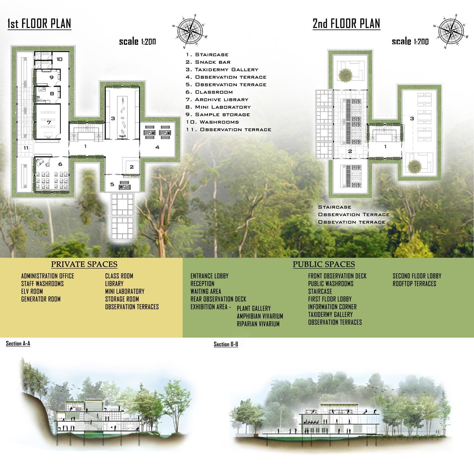 This project mainly focuses about how to achieve a sustainable architectural design in an environmentally sensitive zone through a sensitive and minimal design approach while creating a minimal impact to the surrounding nature and uplifting the sustainability of connection between society and the forest reserve.