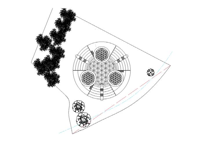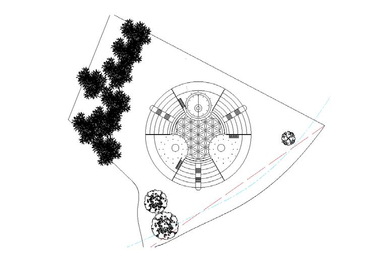 As for the concept, a sacred Mandala was taken, put into the site and was considered as the basic grid line for the whole design