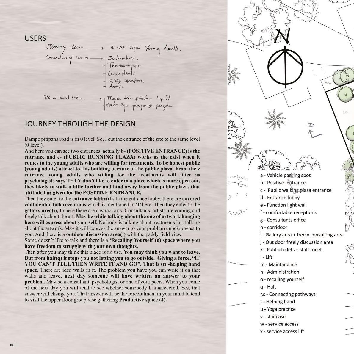 As the CDP project I got the Wellness center project. This project is to design a wellness center in a city which is developing into a tech city. That is Homagama. Homagama, meegoda area is chosen for this project Homagama is in Colombo district in Sri Lanka About 24 kilometers away from Colombo Homagama is well known for its TechCity project A place where rich from different ethnics There is Hot, oppressive, overcast, and windy climate in Homagama. Temperature: 73F to 91F. As a city developing into a TechCity this is going to attract more young adults crowd to this city. So, wellness center project is more suitable for this kind a scenario. The problems identified to start this project When Homagama highlighting as a tech city, most of the people who attract to the city are young adults (The age group of 18 25) is the high prevalence of the depression When giving treatments the major problem in young adults is, they are not continuing or less likely get into treatments because of the fear of Medication or stigmas around the treatments. (Their characteristics of self consciousness comparison, and outer comparison.) As psychologists says young adult group is a transition period in between teenage and adults. ‘Young adults were consistently less likely than older adults’ group strongly believe that the patients with the mental illness will live normal Less likely receive sympathy and care from others, or benefit from Psychiatric treatment. Young adults labeled, “depression” as representing a negative self perception. They mark depression as abnormal, weak, ill adjust or crazy. Young adults resist the idea of treatments because of fear of medication or stigmas around treatments ’As Architectural problem I could highlight that Lacking a place which is not tagged as a mental treatment center but also move with public, which gives a freedom, comfortable, confidential surrounding for young adults who willing for treatments for depression. SOLUTION ‘As Psychologists say, we all have depression in ourselves in different levels, stages. Depression is not an illness, it is a setback in our mindset due to undergoing illness or challenges, or activities we face in our life.’ So, there are no one to be cornered 1 A place where stay away from forceful, getting treatments, step by step feeling like any other mental wellness centers with focusing on outpatient treatments, a facility must ensure a high level of comfort, a place where they feel more secure. 2. Where the reception, areas with enable confidential conversations without Embarrassment. 3. A place where inviting both those depressed and those who are not, without anyone knowing this is tagged as a mental treatment center., and without depressed persons viewed to outsiders as getting treatments and let them feel they are secure in having treatments Unbeknownst to them 4 I called it as a positivity center