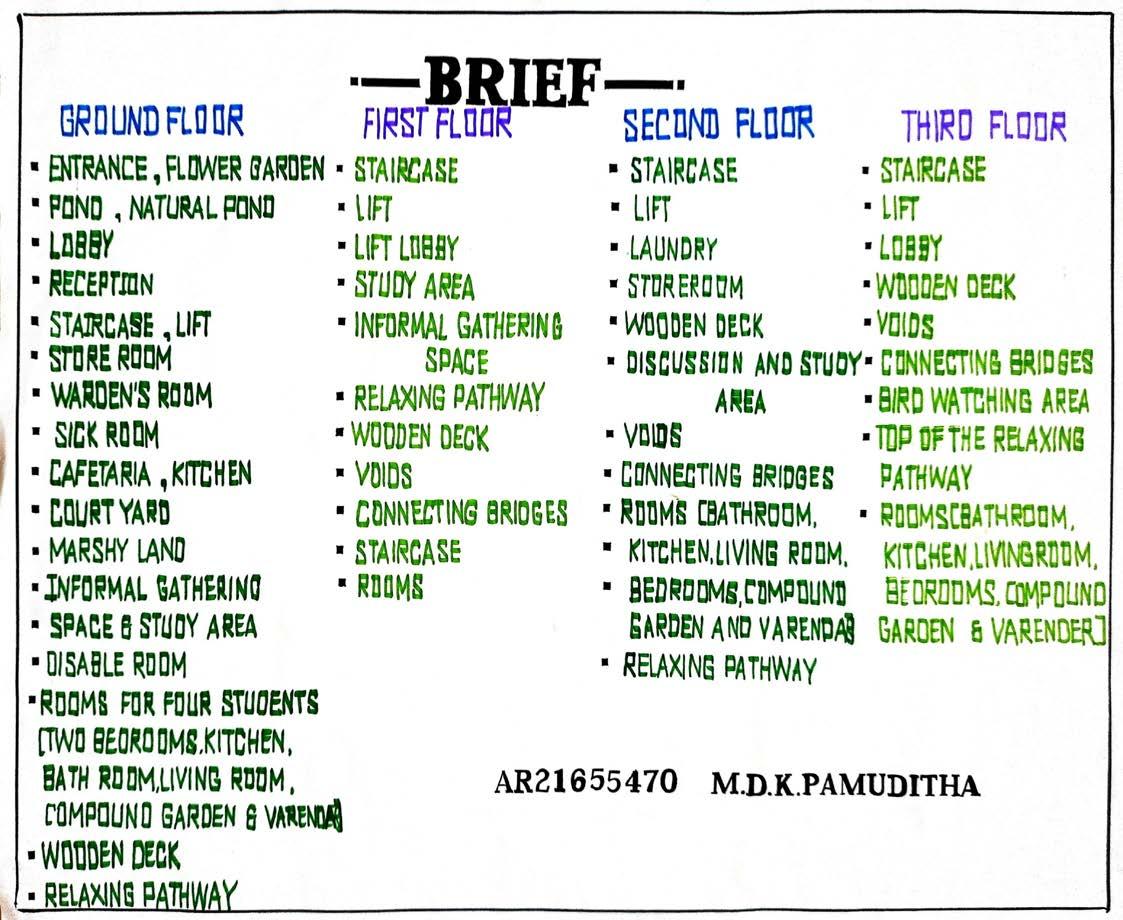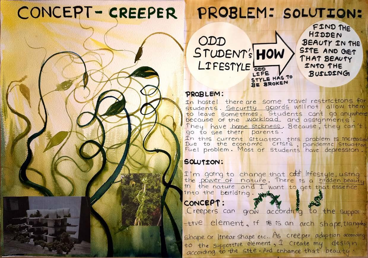 VIDYALAYA AND AFTER AL’S I MOVED TO SCHOOL OF ARCHITECTURE .IT IS A TURNING POINT TO ME.I HAVE ART AND SKETCHING SKILLS SO,IT IS EASIER FOR ME WHEN DOING MY PROJECTS ,I ALWAYS TRY TO DO MY BEST AND LOVE TO ENJOY IT. USUALLY ,I ‘M NOT USED TO DO SAME KIND OF BUILDINGS.BUT,I BUILD TECTONICS ACCORDING TO MY CONCEPTS AND INSPIRATION. I LOVE TO DO SUSTAINABLE ,ORGANIC ARCHITECTURE ACTUALLY ,I LOVE TO STUDY MANY FIELDS . I DON’T LIKE TO STUCK MY LIFE IN TO ONE FRAME MY FINAL GOAL IS TO BE A VALUABLE PERSON TO THE WORLD.