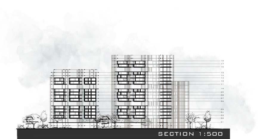 THE DESIGN BUILDS AS A BALANCE BETWEEN SOLID AND VOID TO CREATE A VERTICAL NEIGHBORHOOD FOR BETTER LIGHT AND VENTILATION, GREEN NEIGHBORHOOD AND INTERCONNECTIONS