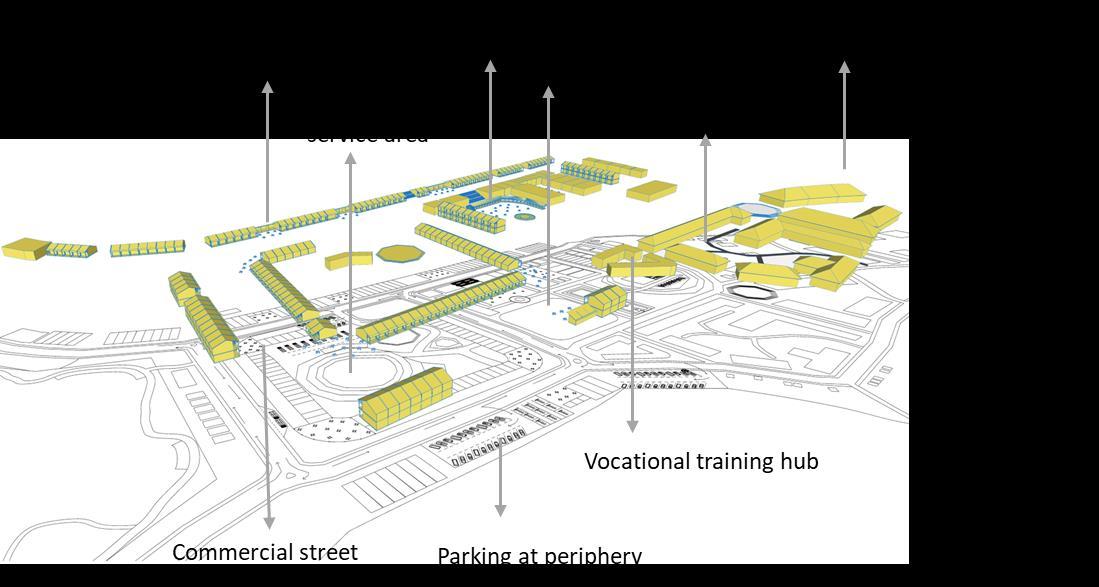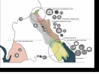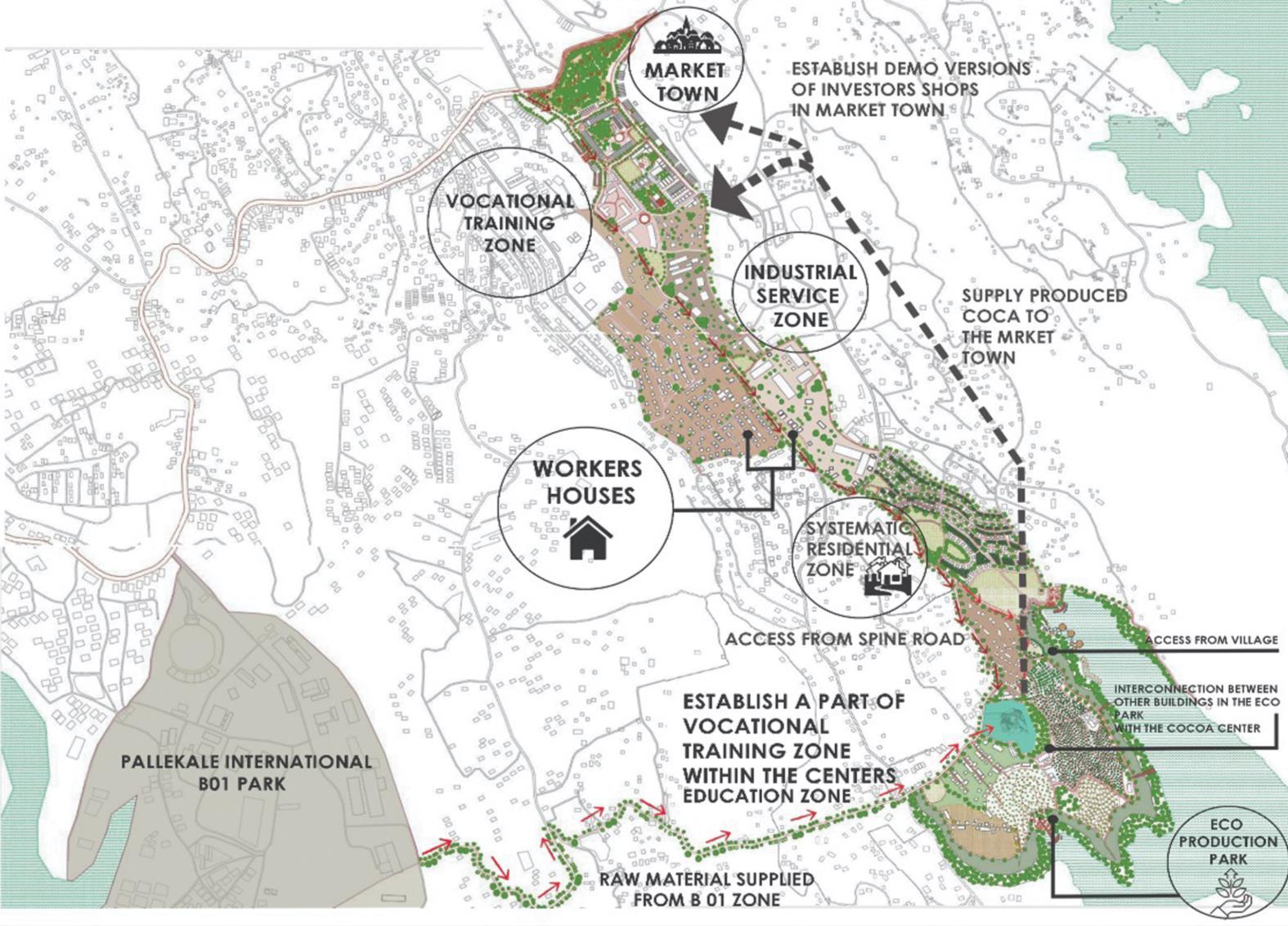 The idea of the proposed Eco Park in the Urban Design is to create an identity through built environment for each center proposed so that the visitors to the park will remember the buildings through the respective landmarks. For example, Cocoa awareness center, Dairy farm center, coffee production center etc. will be developed in this eco-park. Each center will have a monumental feature unique and memorable to its visitors