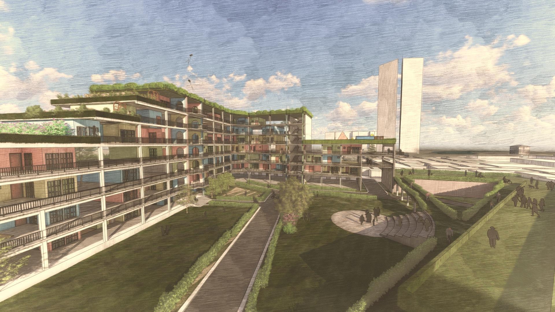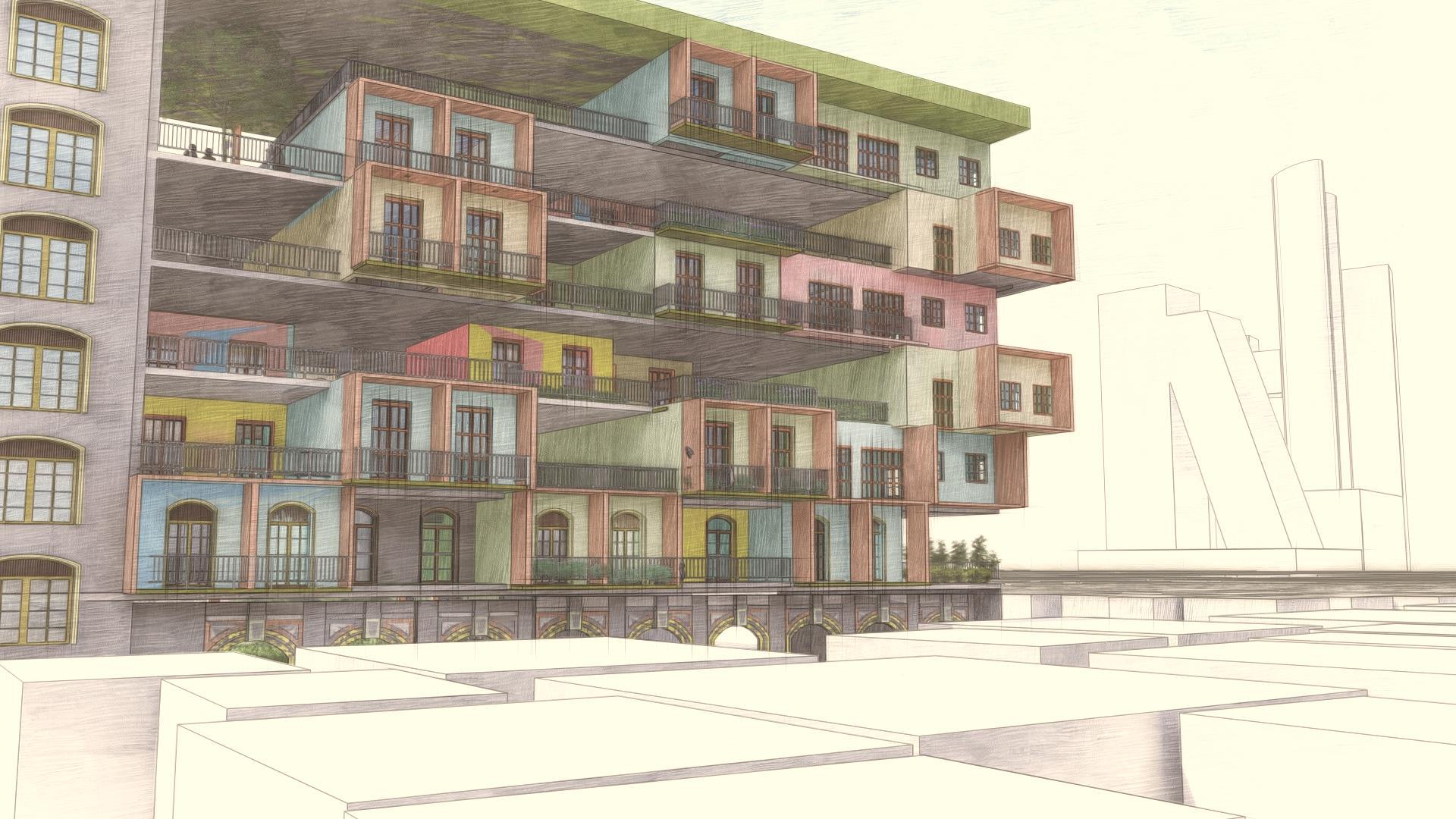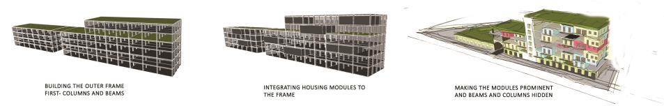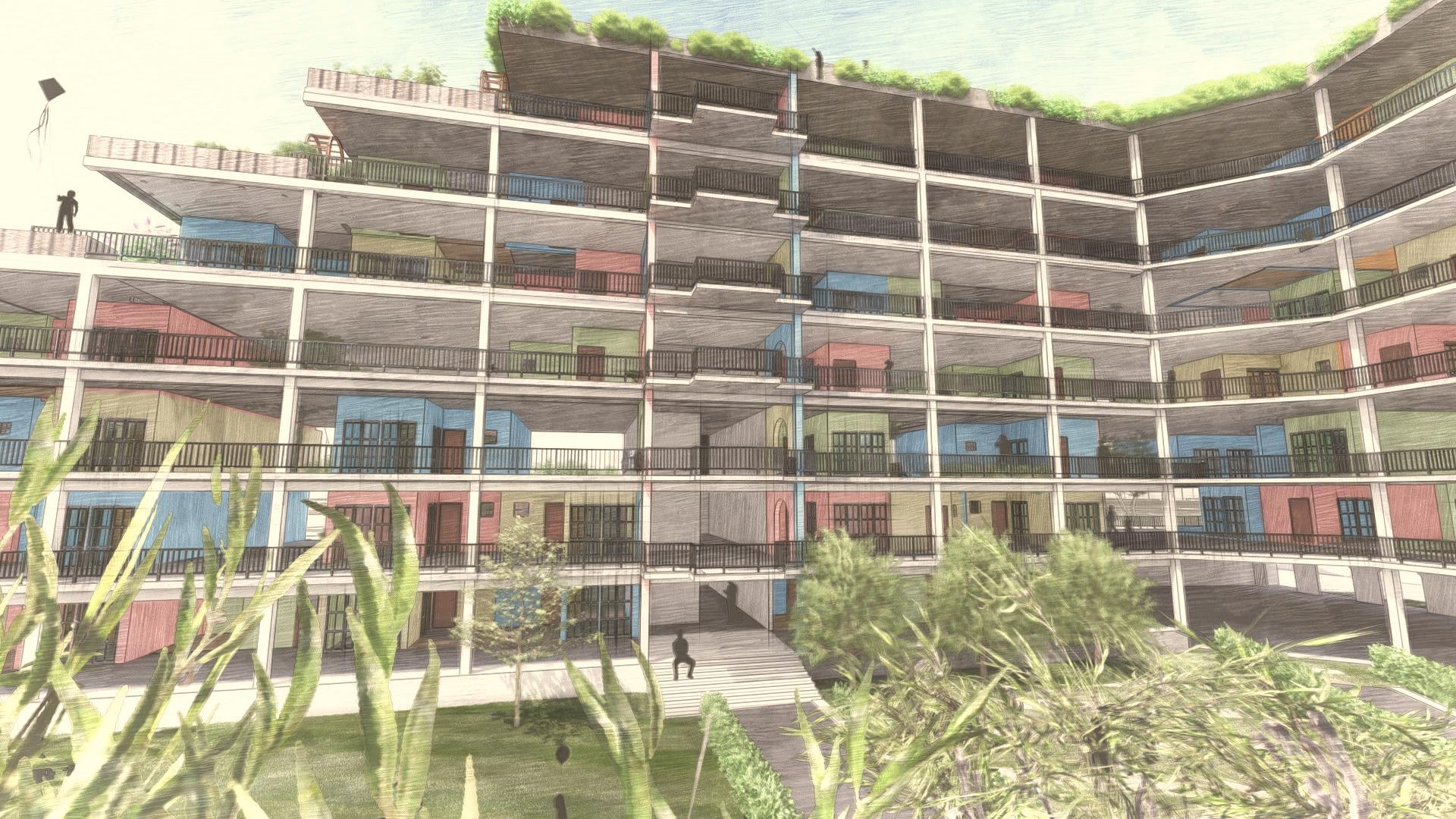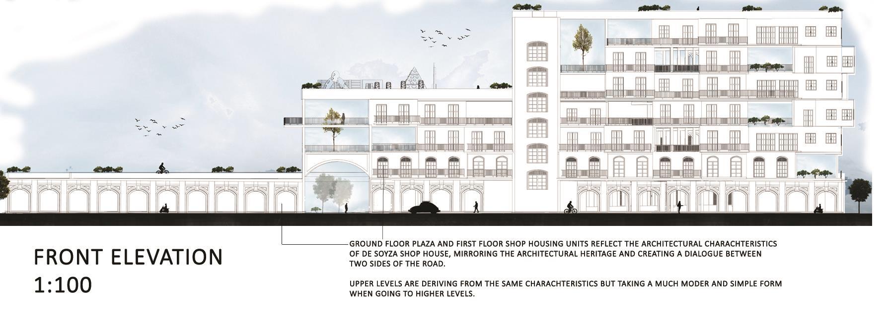 The urban fabric of the Slave Island with such a great historical and cultural background should experience rebirth saving the spirit of the place with its unique context and traditions Through the Architecture of proposed housing, it attempts to make people feel proud about their home and realize the cultural and heritage value of their home. It attempts to create the “sense of place”. 300 Residents (Around 60 families) from the existing context is accommodated in this proposed housing design. This design is borrowing forms and colours from existing dwellings but taking into consideration modern rapid urbanization Design composition attempts to create a dialog between two sides of the road, mirroring the Architectural Heritage of this side. Housing modules of different typologies are designed and arranged into a continuous flexible network, using incremental housing strategy, which provides inhabitants to create themselves. Also, community interaction and interplay play a key role in the housing design.