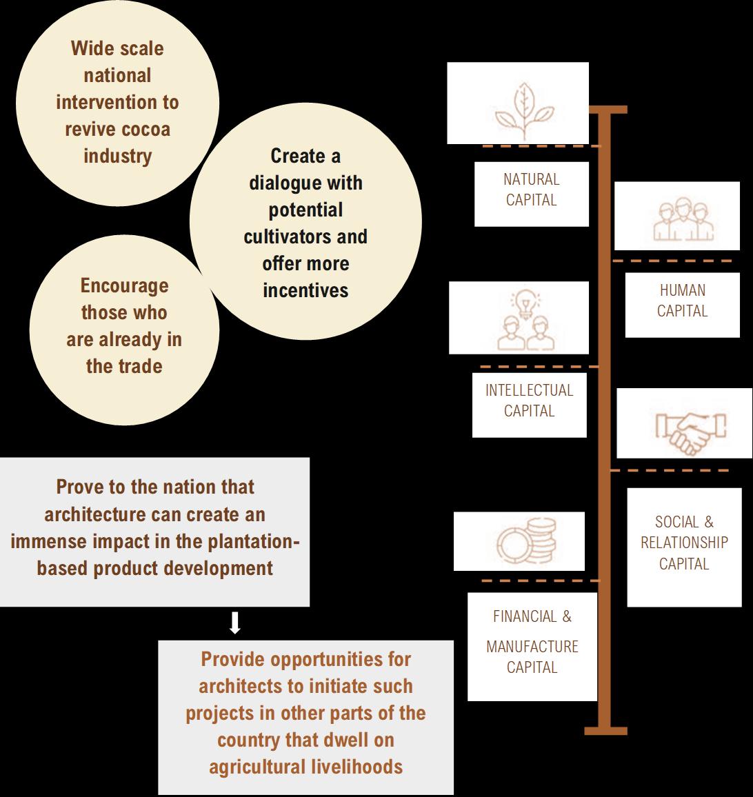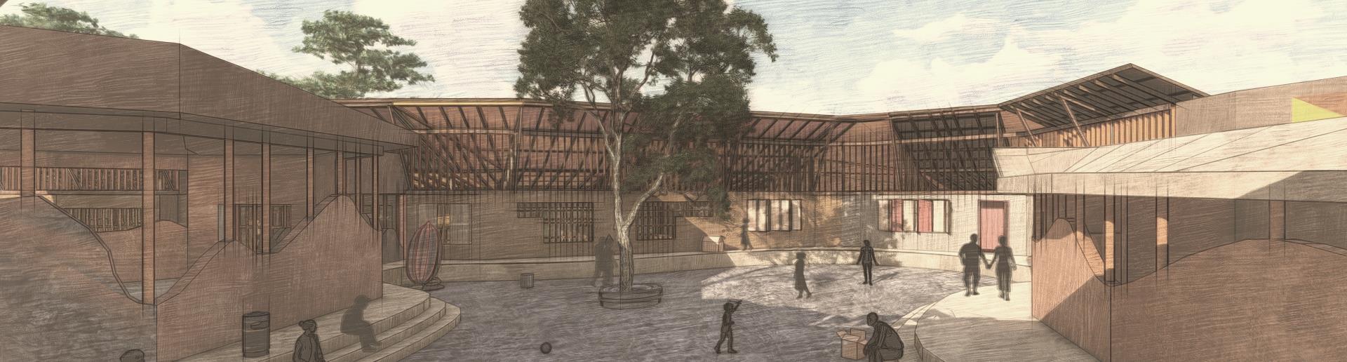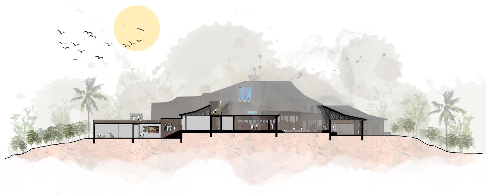 This development is primarily focusing on the people dwelling within Digana township, and the outsider visitors and tourists come secondly This center is utilizing and uplifting the existing livelihoods and potentials of people living in Digana It is a place for people, created by the people. This center will serve as the central facility that is dedicated to rural revitalization, and the fundamental architectural initiative is dedicated to uplifting the way of living of people of Digana engaged in agro based livelihoods like cocoa production. This design includes a series of programed activities from processing cocoa, learning about cocoa production, researching about cocoa, experiencing the production process, marketing and interacting These spaces will be connecting with each other would encourage workers to engage more actively on work while marketing the potential with this series of loops of activities.