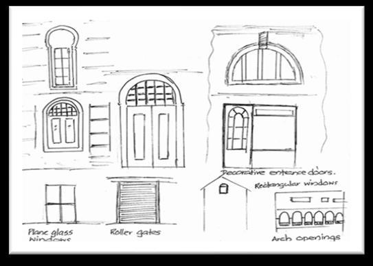 • Has comparatively wider pedestrian pavements Front verandas of historic buildings are linked with these pavements.