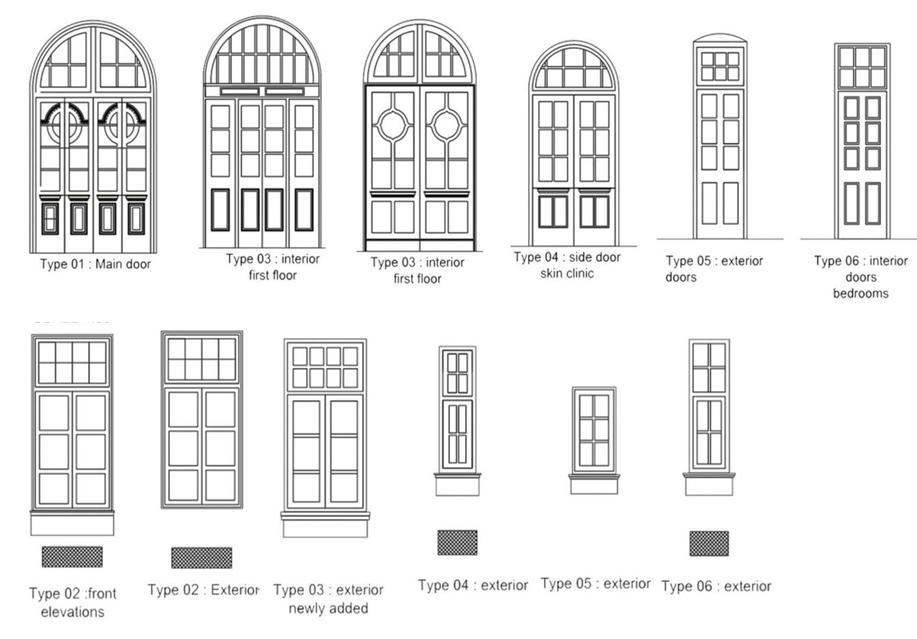 Square shape and arch shape doors and windows are doors and windows have prominent material used space, natural timber color can or yellow colors have been used for doors and windows Since the wall colors are mostly natural textured with matte finish, the natural timber finish of doors and windows can be well identified. Colonnades, arcades and other details of the facade reflects the character of colonial architecture Other prominent and important elements of the facade are, decorative timber handrails decorative valance boards and clay tiled roofs. Decorative timber handrails have natural timber color remained, and the handrails done using precast cement panels or cast iron are painted in either white or yellow ocher color. Other elements like arches and columns are decorated with moldings and details to emphasize the building. These elements showcase the grandeur of the facade to the urban context Canopies are built using the same colors as the building façade.