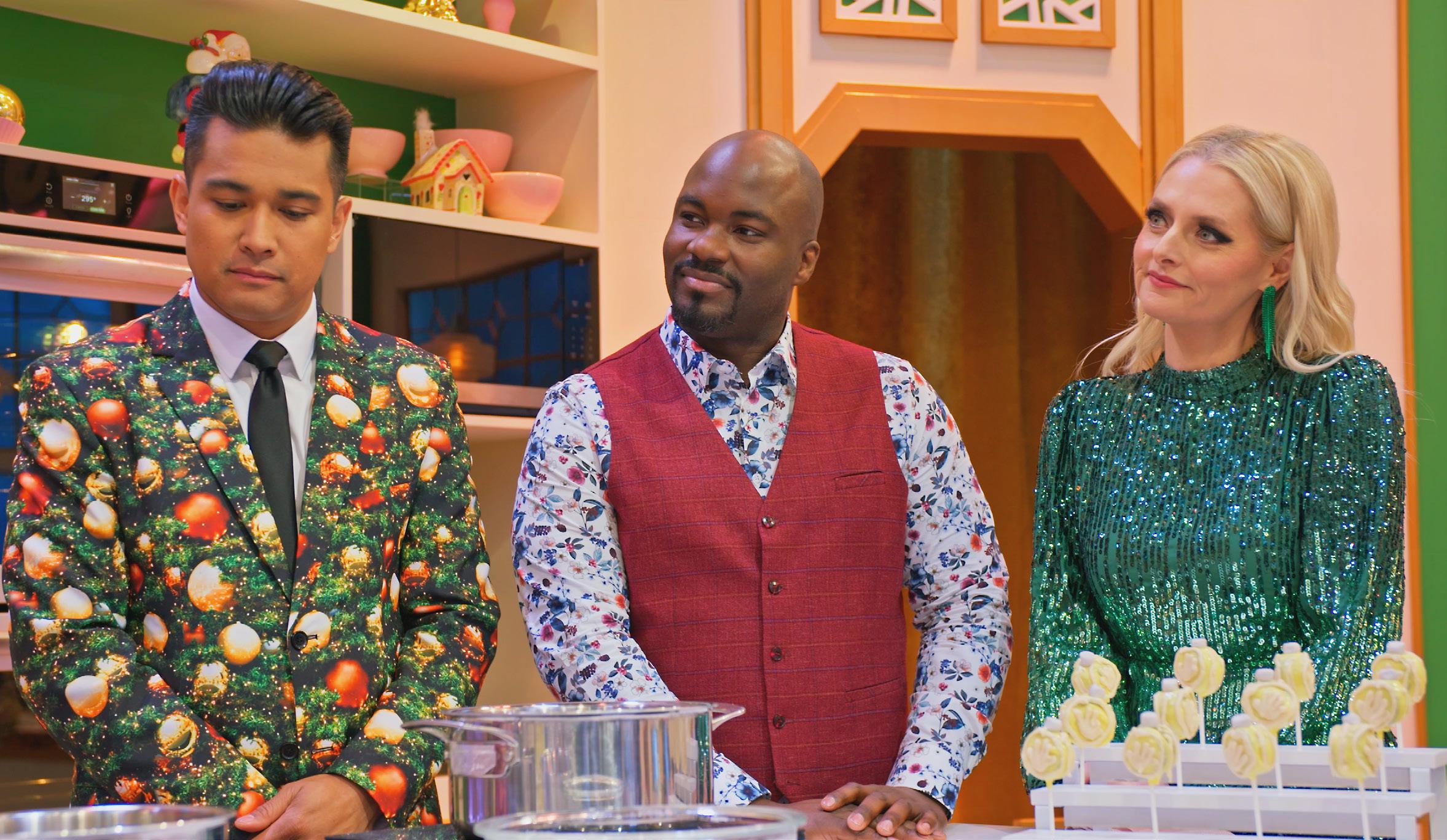 I had gotten this call that was like, “Hey, there’s this Holiday Bakeshop show and they want you to host in Toronto.” The team asked if maybe I could wear a different costume every episode. I could not be more enthusiastic about that. I’m the person who has eight-foot inflatables on the lawn at Christmas. I love that stuff, and we had the best time.