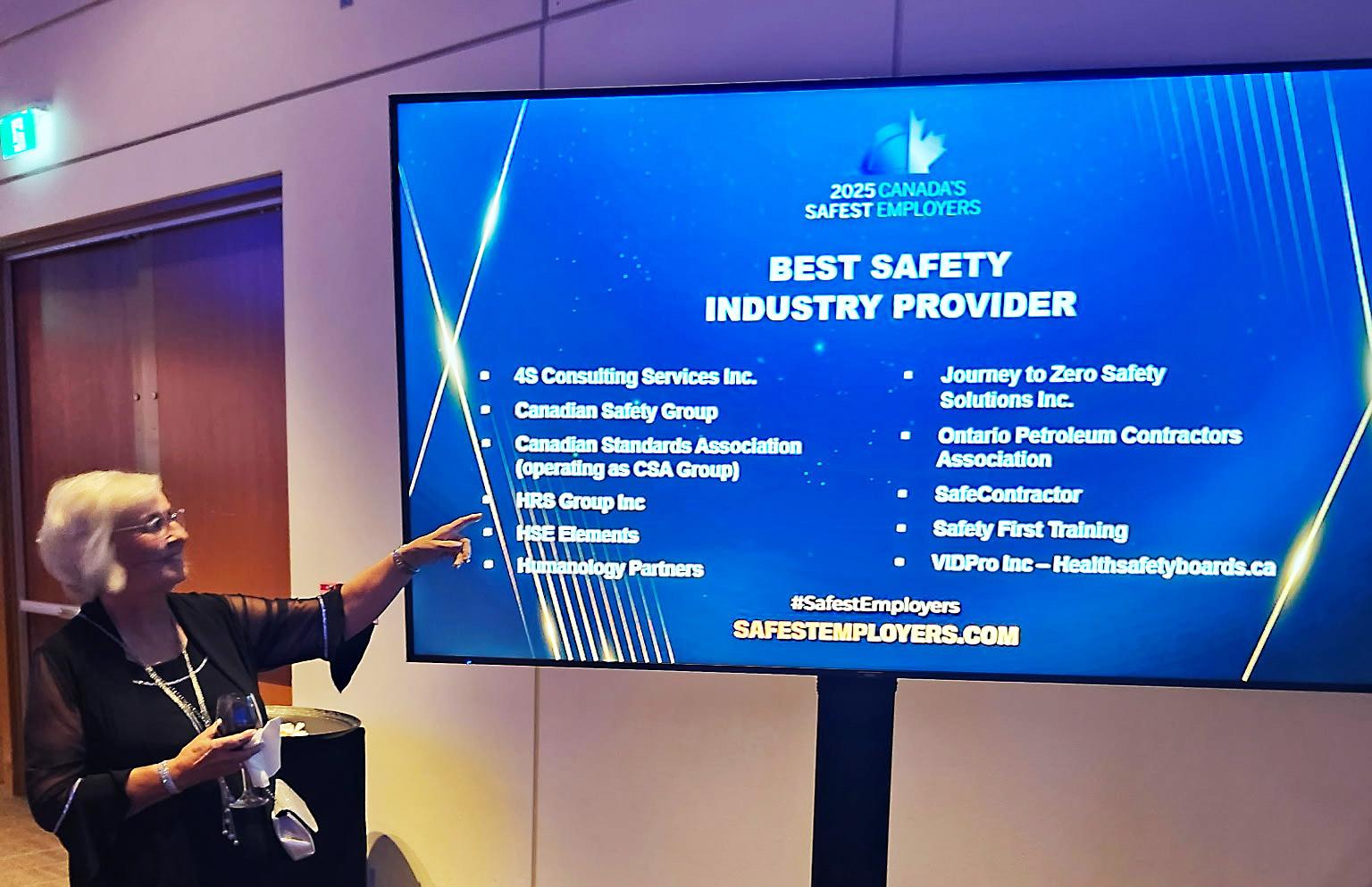 t HRSGroup, we are thrilled to have been named in the top eleven safety providers in Canada! We were nominated for this prestigious honour and short listed by a panel of judges. The other companies who were short listed were 4S Consulting Services, Canadian Safety Group, HSE Elements, Humanology Partners, Journey to Zero Safety Solutions Inc. Ontario Petroleum Contractors Association, SafeContrator, Safety First Training, VISDPro Inc., and the winner was Canadian Standards Association (CSA Group). Congratulations to all of these deserving partners in safety. It was all very exciting to be included with such an amazing group of people.