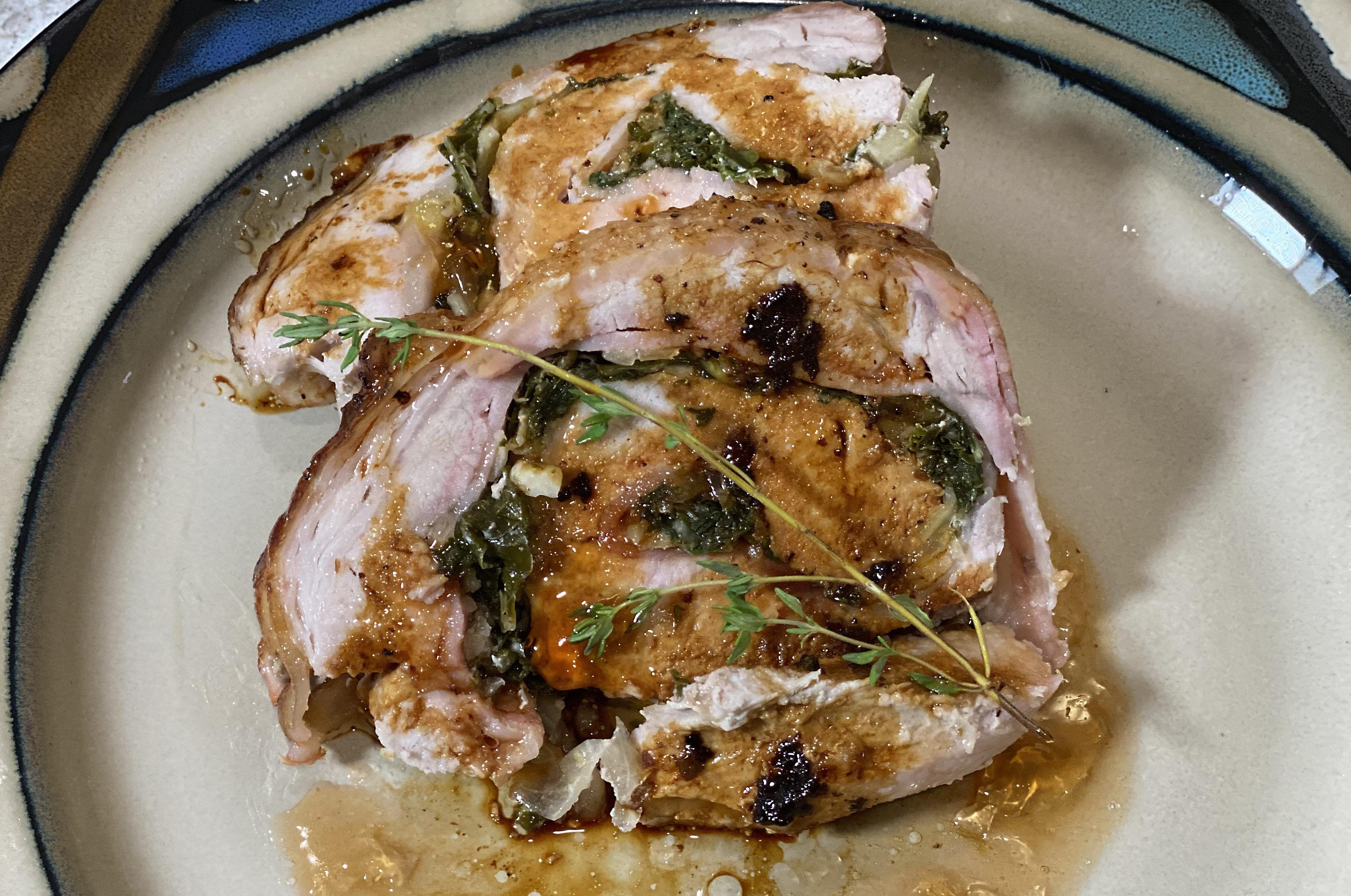 Leak & Spinach Stuffed Turkey Loaf and Orange Cranberry Sauce