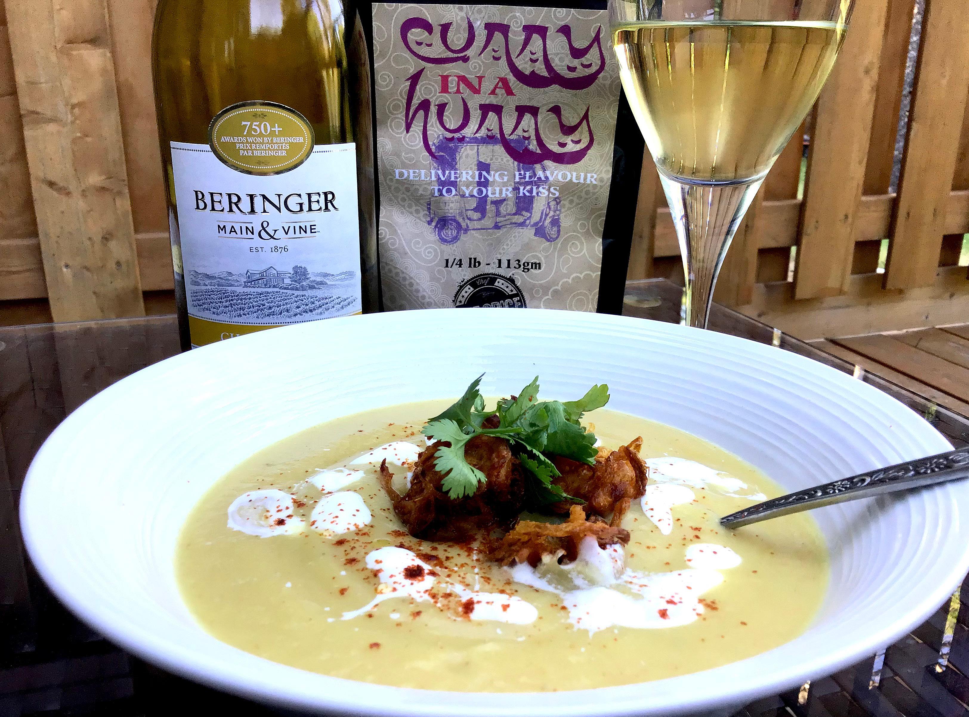 Clauiflower & Parsnip Soup with Onion Bhajia