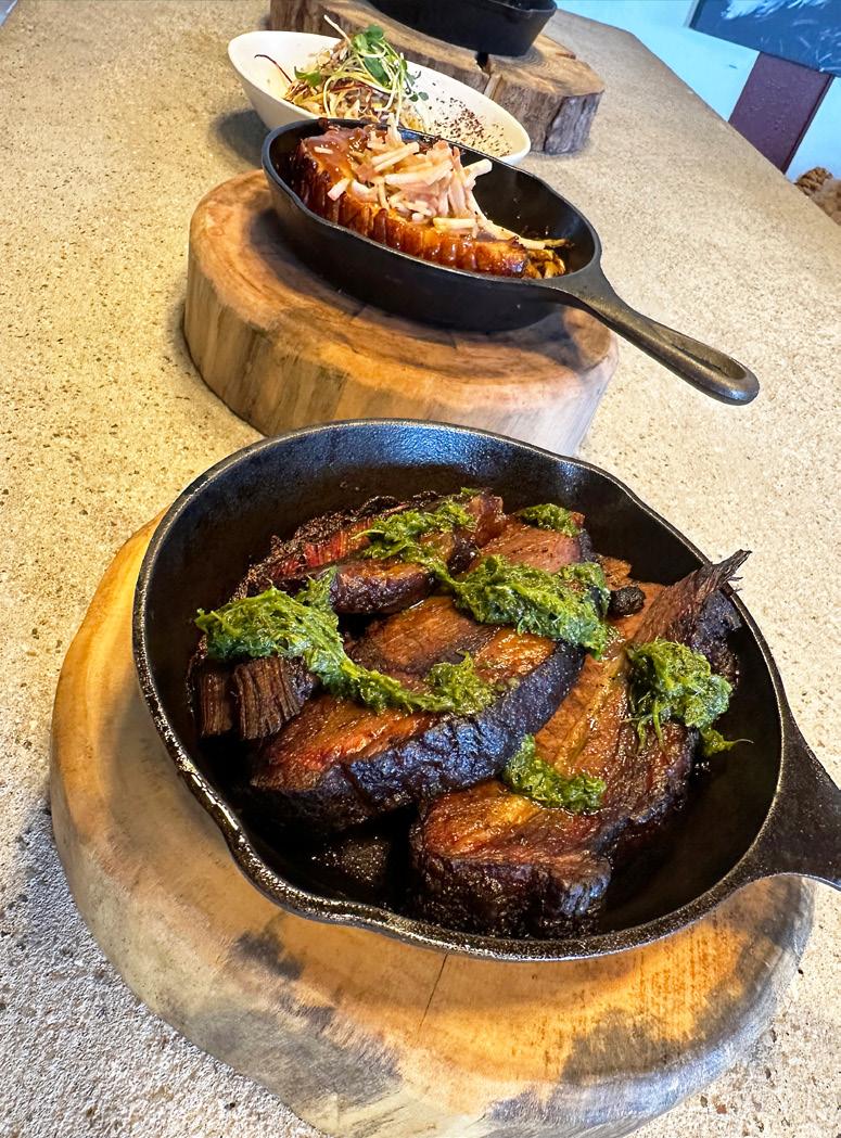 The menu is hyper-seasonal and changes weekly, blending global influences with local ingredients. Much of the produce is sourced from Lunar Rhythm Organics, while meat comes from trusted local sup -
