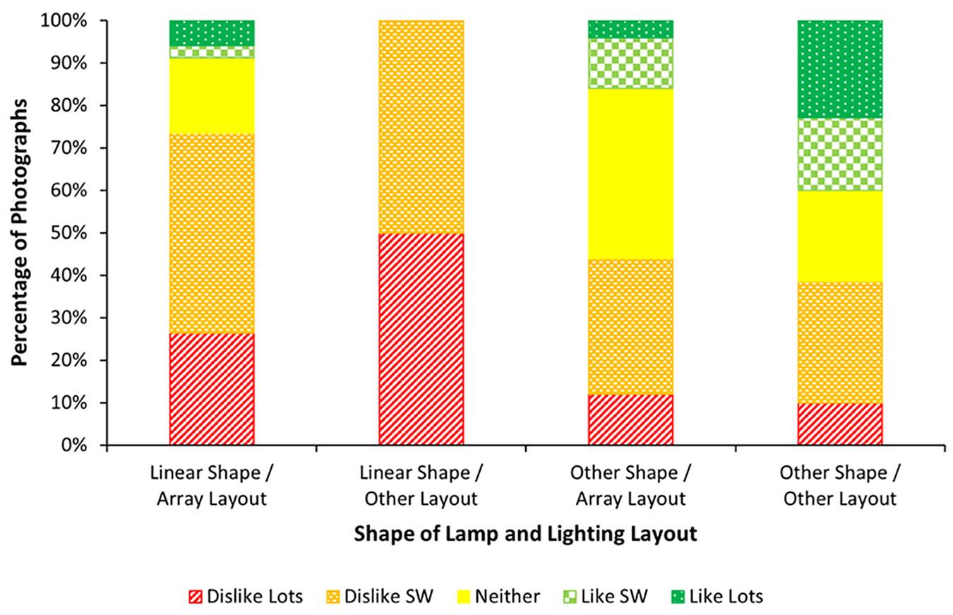 The authors note that a strong dislike of linear-grid lights was expected. However, the extent of this dislike towards the lighting systems in library/community spaces and medical buildings, particularly waiting rooms, was a concern, as these spaces are likely to be used by autistic people, and should prioritise comfort.