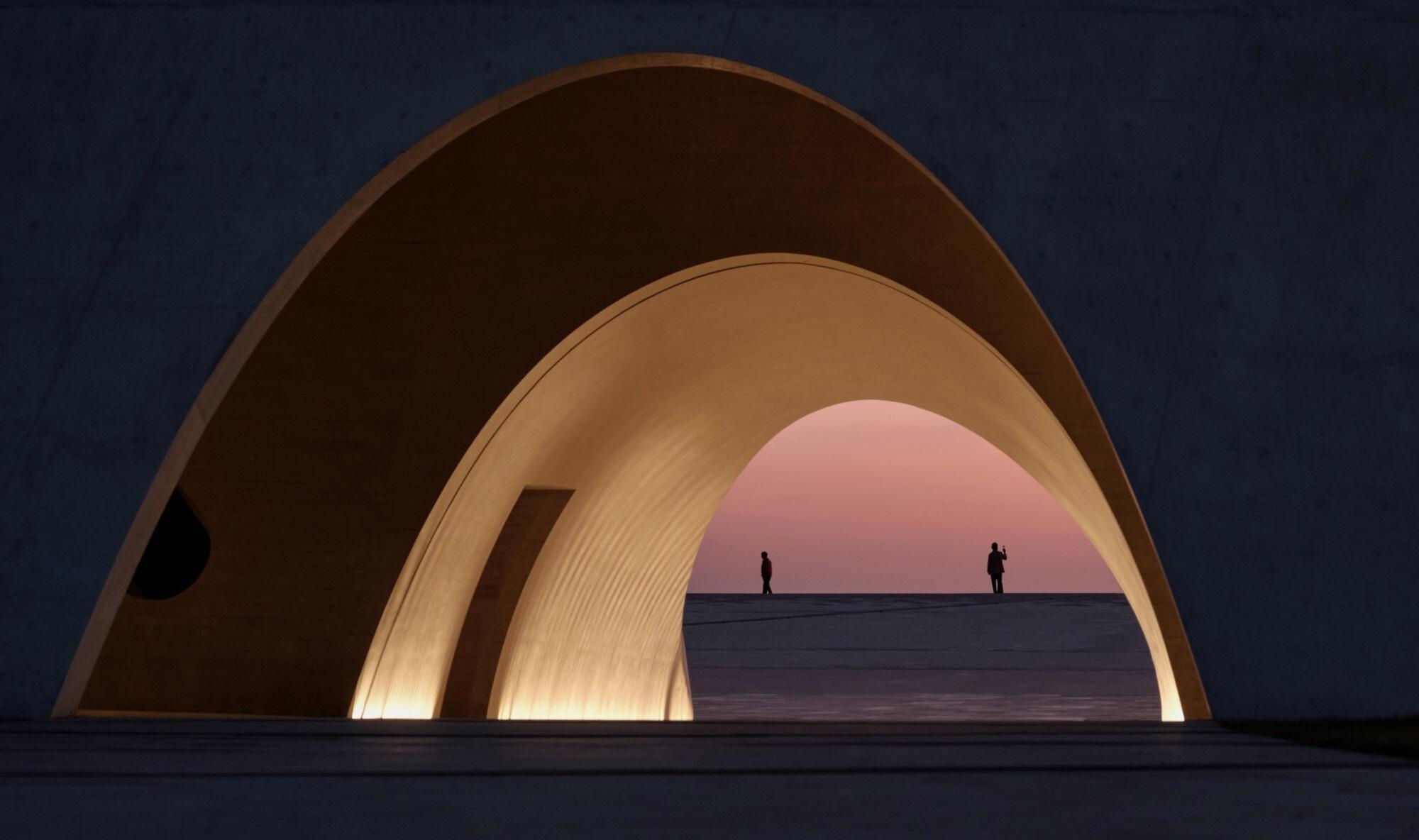 The 50m-high concrete tower combines an observatory, outdoor theatre, exhibition spaces, library, cafe, bar and the so-called Phenomena Space, all housed in a conical form inspired by the path of the sun. Built with two layers of slanted concrete shells, reinforced by horizontal slabs and ramps, the structure was engineered in collaboration with Arup. The curved form, with large openings on the seaward side, provides platforms and viewing areas overlooking the coast.