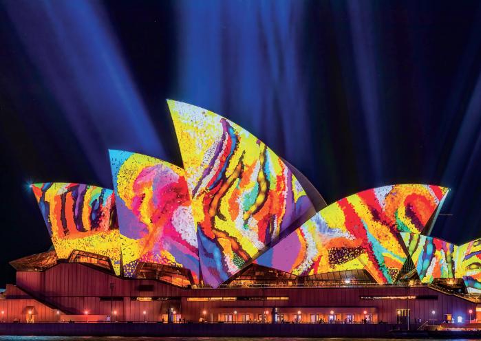 Vivid is held annually in May and June, originally conceptualised in 2008 as a lowenergy lighting festival. It has evolved to include not only light but world-class projection, music, ideas and food. You can walk around the festival on a suggested route or take to the water to view the installations. During the festival there is music, dance and talks to encourage thought and answer those big questions. Sydney Opera House is the perfect canvas for extraordinary creative, colourful projections and animated narratives.