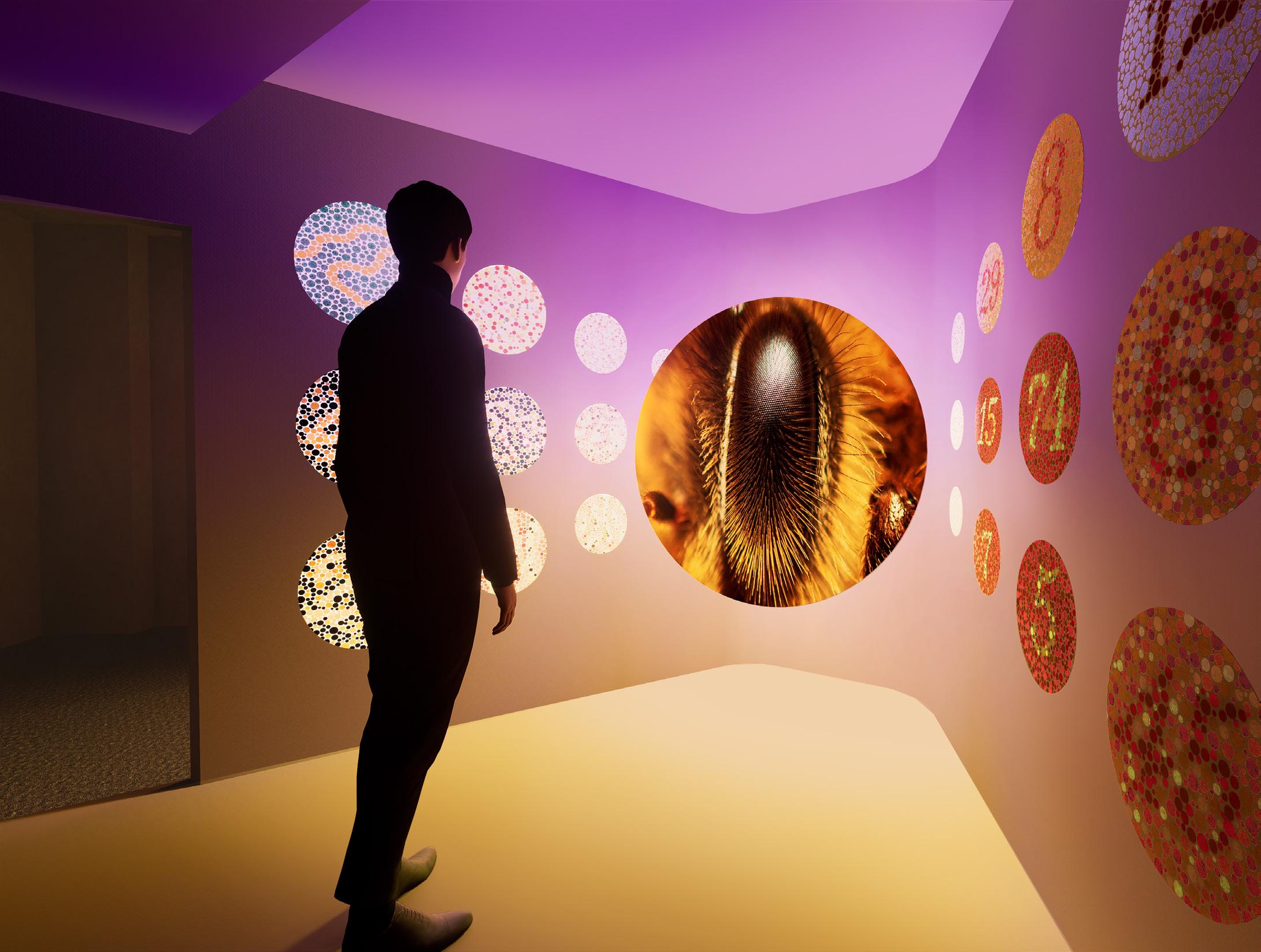 The installation is necessarily simplified, based only on colour perception, but is designed to open minds (and eyes) to alternative realities, and the implications for lighting designers and their impact on other species. It also makes the point that even as humans we see differently according to our age or any number of issues with our visual system.