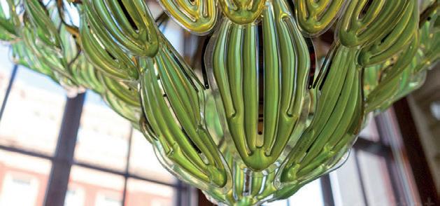 Hands up who wants a light fitting made of pond weed? Named Exhale, this part chandelier and part living organism has 70 glass petals of varying shapes that contain a solution of green algae sustained by daylight, LEDs, and a dripfeed of nutrients. Created by Londonbased designer and engineer Julian Melchiorri, it won the 2017 Emerging Talent Medal at the London Design Festival and was on display at the Victoria and Albert Museum. Actually, it could grow on you.