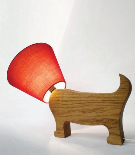A barking idea, obviously. Dog Lamp is designed by Matt Pugh and inspired by the workshop mascot terrier Sampson (presumably after a visit to the vet). Available in dark tulip wood or oak it is fitted with brass fittings and a bronze coloured cable, with white or red shade. It costs £120 in case you are moved to buy one.