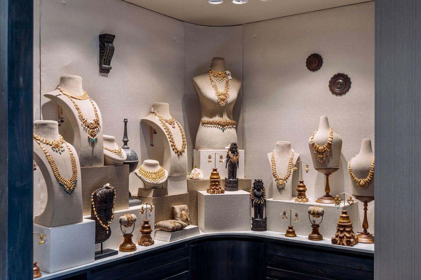 The Gilded Vault (Retail - Jewelers): A departure from retail glitz, this showroom embraces 'Warm Minimalism'. Eschewing stark lighting, we curated a heritage-inspired reserve using soft neutrals. Tactile elegance, antique artifacts and matte fabric busts, allows the intricate jewelry to take centre stage.