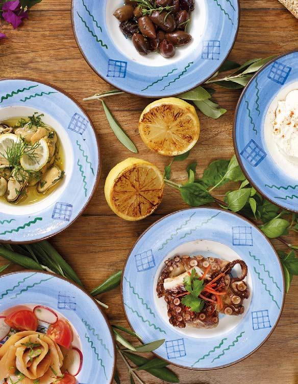 LEFT The Dune Blue tableware range boasts elegantly rounded borders perfectly contrasted by robust and strong shapes; the luxurious Glister range features glittering gold crystals that add a touch of sparkle to any table; with a deep ruby hue, the Tapa range offers a stylish selection of plates and bowls perfect for laid-back gatherings; with its rich blue and green colour palette, the Japanese-inspired Umi range is the perfect vessel for serving flavourful Asian-inspired fare.