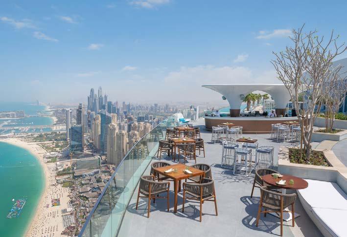 in a building in the world”, as verified by Guinness World Records™ on 31 March 2021. The remarkable new venue is located on the resort’s rooftop and offers guests one-in-alifetime views over the city and its glittering skyline, including the iconic Dubai Ain, Bluewaters Island, the Arabian Gulf and the entire Palm Jumeirah. To top it off, these stunning vistas can be enjoyed while sipping on handcrafted cocktails and indulging in a gourmet Asian menu. The high-altitude venue has fast become one of the most coveted hang-out spots, given its cooler, breezy temperatures and stylish décor.