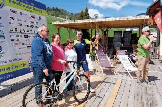 Tudi letos je Dami Zupi podaril kolo otrok u iz zgor njega Posočja Tokrat ga je predal v roke predsednice Dr uštva diabetikov Tolmin. Novega kolesa se je razveselil živahen otrok,