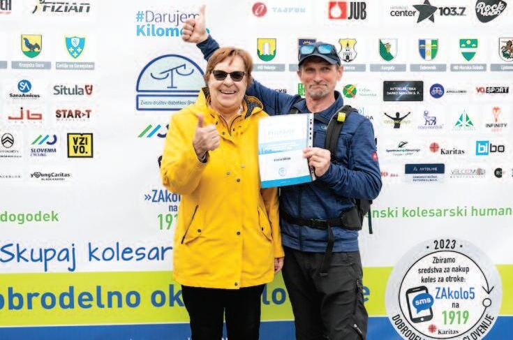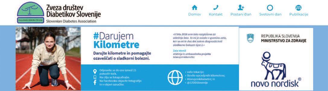 V l e to š nj i d o g odek se je z vseslove n sko k a mp a nj o #DarujemKilometre vključila tudi Zveza dr uštev diabetikov Slovenije. Predsednik Zveze društev diabetikov Slovenije Robert Gratton je predstavil kampanjo, s katero Zveza ozavešča o zdravem načinu življenja in prepoznavanju sladkor ne bolezni. »Z njo spodbujamo Slovence h gibanju s hojo, tekom in kolesarjenjem Izbrali smo tudi 15 pohodnih poti, na katerih smo postavili infor mativne table, kako objaviti in darovati kilometre, k ar lahko stori prav vsak,« je povedal Z zbranimi kilometri bi radi prišli do Lune in pri tem so sodelovali tudi udeleženci kolesarjenja okrog Slovenije ter prispevali več kot 30 000 km Kolesarila sta tudi Urban Kravos in Aljaž Bratkovič, ambasadorja kampanje #Dar ujemKilometre, ki živit a s sladkor no boleznijo in sta kljub temu uspela prekolesariti celotno traso »S tem želimo sporočiti javnosti, da se tudi s sladkor no boleznijo lahko aktivno gibamo,« je dejal Gratton