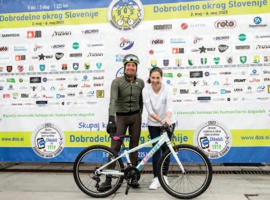 za nakup več kot 90 ko l e s z a ot r o ke i z socialno ogroženih sk u p i n . M e d ko l esarjenjem DOS-a so j i h p o d e l i l i n a toč k a h , k j e r s o s e u s t av i l i ko l e s a r j i . Letos so podarili že 15 koles