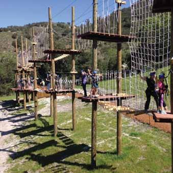 different challenges from swinging tireto-tire, to walking across a long log, to trying to balance across hanging small wood platforms. In between each element you stand up on what they call sky bridges, high platforms with enough room to stand and watch someone in front of you try to gracefully complete a seemingly complicated challenge.