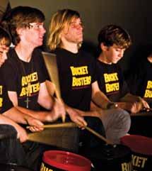 Salvation came, as it turns out, at church. Knowing that he operated a drum school, a local church asked Hilstein if he might be able to organize a performance along the lines of “Stomp” [an urban percussion group that used common household items as instruments] which was becoming popular at that time. Hilstein showed up at the designated time with some of his students who rolled up on stage without much of a plan. The church-goers went wild over the unique sound and some of them hung around after the performance to inquire about the band’s future plans. “We didn’t even have a name at that point,” recalls Hilstein. “But, we had these cheap buckets we kept breaking, so someone there said, ‘Hey, you’re the bucket busters, why don’t you call yourselves the Bucket Busters?’” And so it began…