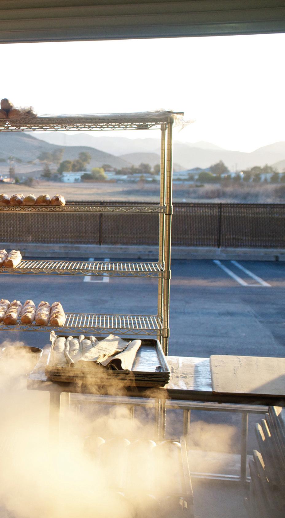 DAN IS A PAINTER as well as a baker, and during the cover shoot we had been talking about light and lighting. He offered a romantic description of the way the early morning sunlight passes through the steam from the oven at his bakery on the outskirts of San Luis Obispo. He suggested coming by early in the morning when they bake the baguettes to see it for myself. As you can see in the image below, he wasn’t kidding.