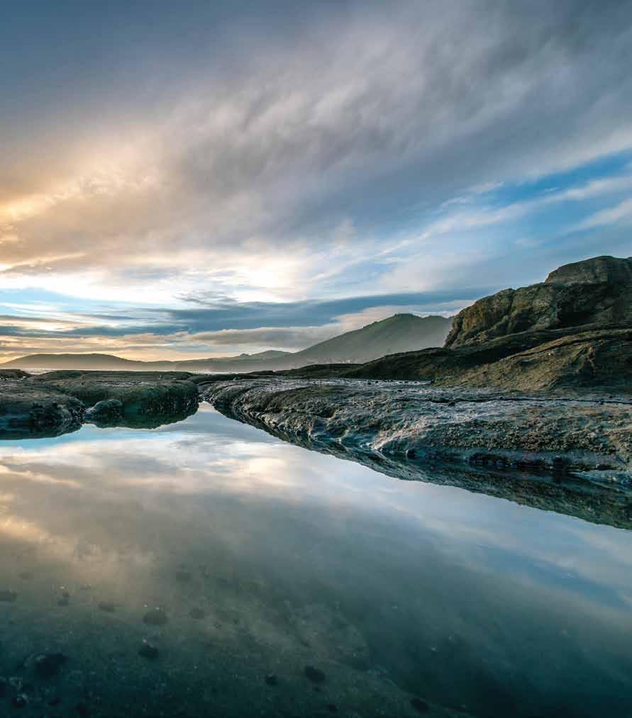 The sunset that day appeared to be somewhat compliant, as it did hang around for an impossibly long time, especially for the dead of winter. “I’ve never seen anything like it,” Lalush remembers, “it was the most beautiful sunset ever, and it just went on and on.” With a close eye on the tide, the photographer set up his Nikon D800 atop a tripod no more than a half-inch above the waterline, so that the full reflection of the oil painted sky above could be captured in the tide pool below. Through a simple polarized lens filter, and with minimal touch-up in postproduction, the photo that you see here was made that day.